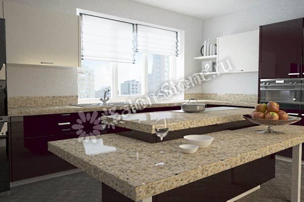 При выборе изделий из камня стоит обратить внимание на следующие показатели: гранит или мрамор намного тяжелее искусственного камня при их слабой сопротивляемости, а также заметно холоднее на ощупь. Природный материал отличается пористой структурой, из-за чего в нем накапливаются загрязнения; он подвержен влиянию кислот, вследствие чего возможно его разрушение. Столешница из искусственного камня выдерживает температуру 150-160 градусов, а при заказе кухонной столешницы клиенту предлагается акционная врезка прутиков из нержавейки в качестве подставки под горячее.