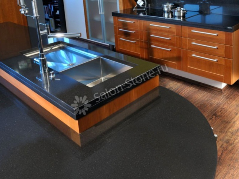 Широкая кухонная столешница темного оттенка
